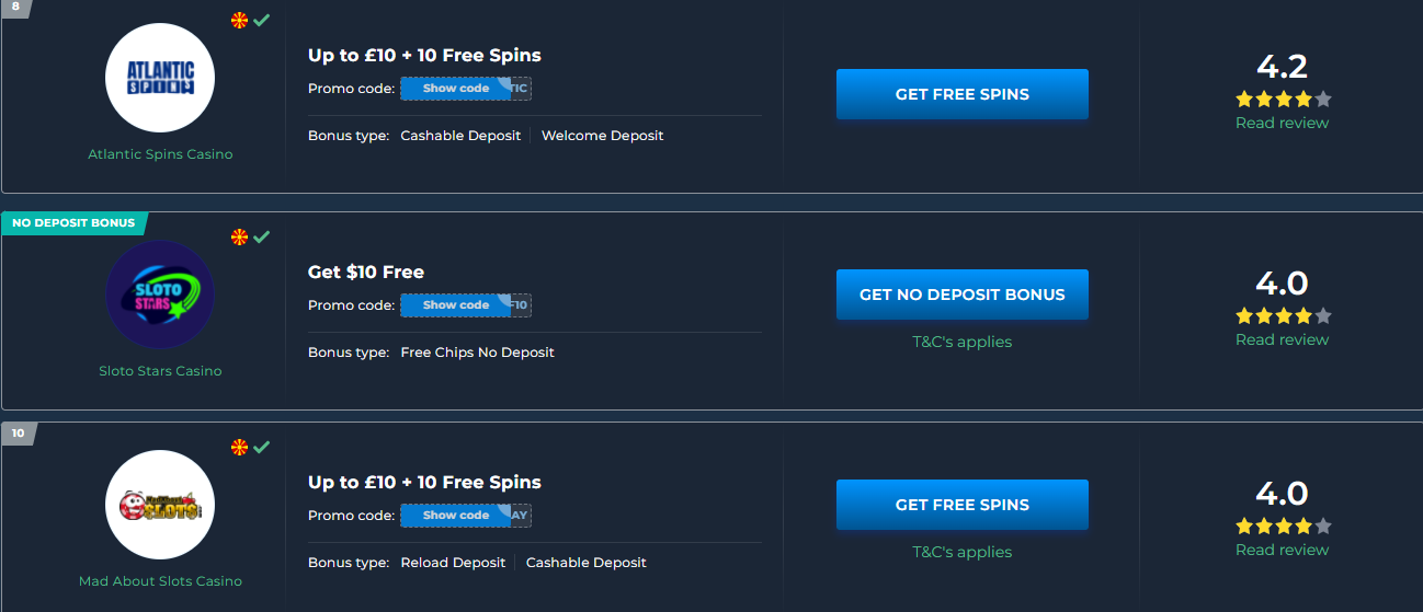 CASINOS | CASINO | BONUSES | NEW CASINOS | CRYPTO CASINOS | SLOTS | FREE SPINS
